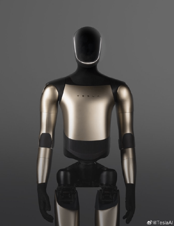 账号首条内容一经发布便引发科技圈广泛关注。照片中展示了新一代人形机器人实物,其采用浅金与黑色相结合的流线型机身设计,显著位置印有特斯拉标志性Logo。